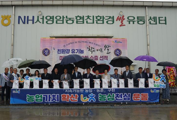 이달 15일 서영암농협에서는 학이머문쌀을 미국에 열 번째 수출하는 선적 기념식행사도 열렸다.