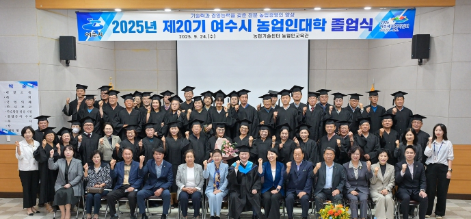 정기명 시장은 “어려운 여건 속에서도 배움에 대한 열정으로 학업을 무사히 마친 졸업생들이 존경스럽다”며 “농업인대학에서 배우고 익힌 지식을 잘 활용해 여수 농업의 경쟁력을 한층 높여 달라”고 당부했다.