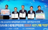 나주 코리아피플뉴스2026. 01.21[코리아피플뉴스](재)2026여수세계섬박람회조직위원회는 지난 20일 서울 종로구 HW컨벤션센터에서 광주전남시도민회와 ‘2026여수세계섬박람회 입장권 5,000매 구매약정’을 체결했다고 밝혔다. 이날 약정식은 조직위원장 김영록 전남도지사와 광주전남시도민회 양광용 회장을 비롯해 향우임원 600여 명이 참석한 가운데 진행됐다. 이번 구매약정은 지난해 체결한 조직위와 광주전남시도민회 간 업무협약에 따른 결실로, 협약 이후 실제 참여와 실천으로 이어진 대규모 구매 사례다. 광주전남시도민회는 1955년 출범한 국내 최대 규모의 향우단체로…