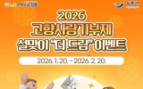 해남 코리아피플뉴스2026. 01.21[코리아피플뉴스]장흥군은 설 명절을 앞두고 고향사랑기부제 활성화를 위해 1월 20일부터 2월 20일까지 ‘2026 설맞이 고향사랑기부제 더 드림 이벤트’를 진행한다. 이벤트 기간 중 ‘고향사랑e음’을 통해 장흥군에 10만 원 이상 기부하면 별도의 신청 절차 없이 자동으로 이벤트에 응모된다. 해당 조건을 충족한 기부자 전원에게는 모바일 상품권 5,000원이 경품으로 제공된다. 또한 이벤트 종료 후에는 무작위 추첨을 통해 10명을 선정, 5,000원권 모바일 상품권을 추가로 증정하는 혜택도 마련돼 있어 최대 1만 원 상당의 경품을…