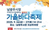 구청 코리아피플뉴스2025. 09.24[코리아피플뉴스]광주 동구는 오는 26~27일 이틀간 남광주시장 공영주차장 일원에서 ‘활력장! 가을 바다 축제’를 개최한다고 밝혔다. 남광주시장 문화관광형시장 육성사업 일환으로 열리게 된 이번 행사는 광주 대표 수산물시장인 남광주시장을 전국에 알림과 동시에 지역 대표 축제로 육성하기 위해 마련됐다. 26일 오후 2시부터 농악놀이, ‘수산물 가요제’ 예선전, 전어잡이 체험 등 식전 행사가 펼쳐지며, 오후 5시 개막식을 시작으로 본격적인 행사가 열린다. 오후 6시부터는 가을 별미가 가득한 ‘바다 야시장’을 운영, 시민들의 발…