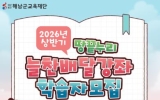 [코리아피플뉴스]해남군교육재단은 군민 평생학습 환경 조성을 위해 상반기 땅끝누리 늘찬배달강좌 학습자를 모집한다. 상반기 땅끝누리 늘찬배달강좌는 3월 3일부터 6월 19일까지 총 16주간 운영되며, 기간 중 총 13회 강좌로 구성된다. 운영 대상은 원칙적으로 10인 이상으로 구성된 학습팀이며, 악기를 활용한 강좌에 한해 7인 이상으로 구성된 학습팀도 신청 가능하도록 운영 기준을 적용한다. 모집 규모는 총 135팀 내외다. 특히 올해 상반기에는 기존 ‘1인 1강좌 신청’에서 동일한 학습팀원이 구성되는 조건하에 1인당 최대 2개…
