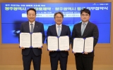강진 코리아피플뉴스2025. 09.15[코리아피플뉴스]광주광역시는 15일 시청 비즈니스룸에서 ㈜대웅제약, 광주 동구와 함께 ‘광주시 인공지능산업 생태계 조성을 위한 업무협약’을 체결했다. 이번 협약은 광주 인공지능(AI) 생태계를 기반으로 디지털 헬스케어 분야의 혁신 성장을 촉진하고 지역 창업 초기 기업(스타트업)의 성장을 지원하기 위해 마련됐다. 협약에 따라 ▲광주시는 인공지능(AI) 기반시설(인프라) 제공과 기업 간 협력 네트워크 구축을 지원하고, ▲㈜대웅제약은 헬스케어 제품·서비스 개발과 스타트업을 육성하며, ▲광주 동구는 의료·복지 기반시설을 연계해 실증 환…