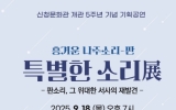 담양 코리아피플뉴스2025. 09.04[코리아피플뉴스]전라남도 나주시가 나주신청문화관 개관 5주년을 맞아 특별 무대를 진행한다. 4일 나주시에 따르면 오는 18일 오후 7시 기획공연 ‘흥겨운 나주소리-판 특별한 소리展’을 열어 소리의 기원과 전승의 의미를 되새기는 특별 공연을 개최한다. 이번 공연은 판소리의 본향 나주에서 지역 예인들의 넋을 기리고 위로하는 ‘나주신청 선생안제’를 재현하며 판소리의 시작부터 일제강점기를 거쳐 현재에 이르기까지의 변화상을 무대에 담는다. 출연진으로는 국가무형유산 판소리 예능 보유자 윤진철, 판소리고법 전승 교육사 정회천, 승무 전승 …