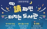 곡성 코리아피플뉴스2025. 08.27[코리아피플뉴스]곡성군이 독서의 달을 맞아 오는 9월 2일부터 30일까지 ‘讀(독)파민 터지는 도서관’이라는 슬로건 아래 다양한 독서문화 행사를 운영한다. 이번 행사는 책 읽기를 통해 군민에게 긍정적인 에너지를 전하고, 도서관의 문화적 가치를 확산하기 위해 마련됐다. 주요 프로그램으로는 △그림책 '마음버스', '사자마트'의 김유 작가와의 만남 △어린이를 위한 연극 '평강 공주와 온달 바보' 공연 △가족 참여형 북캠핑 ‘북나잇! 굿나잇!’ 체험 △철새를 주제로 한 ‘길 위의 인문학’ 강연과 탐방 등이 준비돼 있다. 부…
