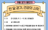 광양 코리아피플뉴스2025. 08.27[코리아피플뉴스]광양시는 시민의 건강생활 실천을 장려하고 참여 확대를 도모하기 위해 오는 9월 1일부터 30일까지 모바일 걷기 앱 ‘워크온(WalkOn)’을 활용한 ‘9월 걷기 챌린지, 한 달 걷기, 건강의 시작’을 운영한다고 밝혔다. 걷기 챌린지는 워크온 앱을 기반으로 참여자가 걸은 만큼 마일리지가 적립되는 방식으로 진행된다. 1걸음당 1마일리지가 누적되며, 1일 최대 8,000마일리지까지 적립된다. 참여자가 챌린지 기간 중 총 20만 보를 걸으면 20만 마일리지가 쌓이며, 모바일상품권(5,000원권) 응모 자격이 주어진다…