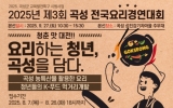 곡성 코리아피플뉴스2025. 08.21[코리아피플뉴스] 곡성군은 지역 농특산물을 활용한 K-Food 먹거리개발과 음식관광 수요 확대를 목표로 개최하는 ‘2025년 제3회 곡성 전국요리경연대회’ 참가자를 오는 26일까지 모집한다고 전했다. 본 대회는 곡성군 교육발전특구시범사업으로 청년창업 지원사업과의 연계를 도모하기 위한 목적으로 ‘청춘 맛 대전 !! 요리하는 청년, 곡성을 담다’를 주제로 진행된다. 참가 자격은 대한민국 국민이며, 2인 1팀을 구성하여야 한다. 팀원 중 1인은 청년(15세~49세 이하)이 반드시 포함되어야 하며, 조리 관련 특성화고 및 조…