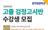 교육 코리아피플뉴스2025. 08.07[코리아피플뉴스]광주시교육청금호평생교육관은 오는 9월부터 12월까지 운영하는 ‘3기 고졸 검정고시반’ 수강생을 선착순 모집한다. ’고졸 검정고시반‘은 성인 만학도와 시니어의 배움에 대한 욕구 충족과 학력 취득 기회를 제공하기 위해 운영하고 있는 ’광주청춘학교‘ 사업의 하나로 마련됐다. 3기 과정은 내년 4월 실시되는 ‘2026년도 1회 고졸 검정고시 시험’에 대비해 고등학교 학력 미취득 성인을 15명 모집해 운영한다. 과정은 ▲국어 ▲수학 ▲영어 ▲사회 ▲과학 ▲한국사 등 6개 강좌이며, 주 1회씩 총 13회 진행된다. 수강…