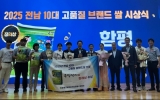 전남 코리아피플뉴스2025. 07.30[코리아피플뉴스]전라남도는 30일 도청 왕인실에서 국민 밥상을 넘어 세계 밥상까지 든든하게 채워줄 2025년 전남 10대 고품질 브랜드 쌀 시상식을 개최했다. 시상식에는 김영록 전남도지사와 이광일 전남도의회 부의장, 김성모 농협전남본부 부본부장, 시군과 농협 관계자 등 100여 명이 참석했다. 행사는 고품질쌀 생산 농협RPC 브랜드마다 특색있는 테마로 제작한 홍보영상 상영, ‘OK! 지금은 전남쌀 세계로!’ 주제의 퍼포먼스 등 다채로운 프로그램으로 진행됐다. 전남쌀의 우수성을 알리고, 고품질 브랜드 쌀 생산을 위해 힘쓴 농가…