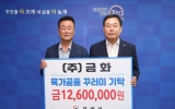 전남 코리아피플뉴스2025. 07.28[코리아피플뉴스]전남 무안군은 지난 28일, 도계․육가공 전문업체인 ㈜금화(대표 이상배)로부터 1,200만원 상당의 육가공품 꾸러미를 기탁받았다. 이날 기탁식에는 ㈜금화 이상배 대표를 비롯한 임직원과 김산 군수, 군 관계자들이 참석해 지역 아동을 위한 따뜻한 나눔의 의미를 함께 나눴다. 이번 후원은 무안군 청계면에 본사를 둔 ㈜금화가 방학 중 식사 공백 및 결식 우려가 있는 드림스타트 사례관리 아동과 가정위탁 아동을 위해 마련한 것으로, 치킨 등 육가공품으로 구성된 식품 꾸러미가 전달됐다. 기탁된 물품은 취약계층 아동 9…