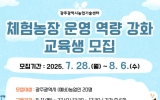 완도 코리아피플뉴스2025. 07.24[코리아피플뉴스]광주광역시 농업기술센터는 체험농장 운영자의 기획력과 실행력을 높이고 농촌융복합산업을 활성화하기 위해 ‘2025년 체험농장 운영 역량강화 교육’ 참가자를 모집한다. 이번 교육은 8월 11일부터 27일까지 총 6회에 걸쳐 진행되며 ▲농촌관광과 체험서비스의 이해 ▲체험농장 운영 관련 법규 ▲치유농장 자원 분석 및 프로그램 사례 ▲비대면 체험키트 상품 개발 ▲우수 농장 현장 견학 등으로 구성된다. 교육과정은 실제 운영사례와 실무기법 중심으로 편성, 참여농가의 콘텐츠 기획력과 현장 적용능력을 함께 높일 수 있도록 설계됐다…