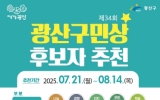 완도 코리아피플뉴스2025. 07.22[코리아피플뉴스]광주 광산구가 지역사회 발전, 상생공동체 실현에 앞장선 제34회 ‘광산구민상’ 후보자를 공모한다. △나눔‧봉사 △효행‧복지 △자치공동체 △문화‧예술‧체육 △학술‧교육 △지역경제 △노사상생 △산업기술 △인권증진 △안전‧환경까지 총 10개 부문에서 공적을 세운 시민 등에게 상을 수여한다. 광산구에서 태어났거나 3년 이상 살고 있는 주민, 공고일 기준 3년 이상 사업장 소재지가 광산구인 직장에 다니거나 활동 실적이 있는 시민이라면 누구나 주민 30명 이상 추천이나 부서(동)장, 기관‧단체장 추천으로 후보자가 될 수 있…