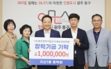 영암 코리아피플뉴스2025. 07.10[코리아피플뉴스]광주 동구는 최근 지산1동 동백회로부터 인재 육성에 써달라며 장학금 1백만 원을 기탁받았다고 밝혔다. ‘동구에서 백세까지’라는 뜻을 담고 있는 동백회는 윤승오 지산1동 주민자치회장을 비롯해 주민과 관내 동 거주 직원 등으로 구성된 모임으로, 지역사회 발전과 주민 간 소통을 도모하고 있다. 이번 장학금은 회원들이 십시일반 회비를 모아 마련한 것으로, 동구 인재육성장학회에 전달됐다. 장택용 회장은 “작은 정성이지만 우리 지역 학생들의 밝은 미래에 보탬이 되길 바란다”고 말했다. 임택 동구청장은 “지역을 사랑하…