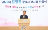 광양 코리아피플뉴스2025. 07.01[코리아피플뉴스]광양시는 7월 1일 시청 회의실에서 정인화 시장과 직원 150여 명이 참석한 가운데 제22대 김정완 광양시 부시장 취임식을 개최했다. 취임식은 약력 소개, 환영 꽃다발 증정, 환영사, 취임사, 직원과의 인사 순으로 진행됐다. 정인화 시장은 환영사에서 “김정완 부시장은 행정고시 출신의 재원으로, 전남도와 지방자치단체에서 다양한 경험을 쌓은 행정·투자유치 전문가”라며, “이런 분을 부시장으로 모시게 되어 매우 기쁘며, 광양시와 시민들에게 큰 힘이 되어주실 것으로 기대한다”고 밝혔다. 김정완 부시장은 “광양을 위해 …