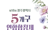 구청 코리아피플뉴스2025. 06.27[코리아피플뉴스]광주 동구는 제18회 광주 5개구 연합합창제가 오는 7월 2일 오후 7시 30분 빛고을시민문화관에서 열린다고 밝혔다. 이번 합창제는 광주 5개 자치구 구립합창단이 모인 ‘광주광역시 5개구 합창연합회(회장 박병국 동구 합창단 지휘자)’가 주관한다. 올해로 18회를 맞은 이날 행사는 광주 5개구 합창단이 한자리에 모여 지난 1년 동안 갈고 닦은 실력을 선보이는 무대로 각 구 합창단은 아름다운 하모니로 관객들에게 깊은 감동을 선사할 예정이다. 이날 공연에서는 ‘나는 반딧불’, ‘못잊어’, ‘젊어지는 샘물’, ‘보리밭…