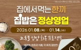 고흥 코리아피플뉴스2026. 01.08[코리아피플뉴스]고흥군이 운영하는 온라인 농수축특산물 쇼핑몰 ‘고흥몰’이 가정 내 식사를 보다 간편하고 실속 있게 즐길 수 있도록 돕기 위해 집밥 중심 기획전을 운영한다. 이번 행사는 ‘집에서 먹는 한 끼, 집밥은 정상영업’을 주제로, 밀키트·반조리 식품·국·찌개류·밑반찬 등 집에서 손쉽게 준비할 수 있는 상품을 중심으로 최대 30% 할인 혜택을 제공한다. 행사 기간은 1월 8일부터 14일까지다. 특히 조리 부담을 줄이면서도 일상적인 식사를 꾸준히 이어갈 수 있도록 실용성과 활용도가 높은 상품 구성을 강화했으며, 맞벌이 가구…