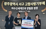 구청 코리아피플뉴스2025. 06.19[코리아피플뉴스]광주광역시 서구에 고향사랑기부제 최고액 기부자가 탄생했다. 서구는 18일 고향사랑기부금 2천만원을 기부한 양필중 여수 신세계안과 원장에게 감사패를 전달했다고 밝혔다. 올해부터 고향사랑기부제의 개인 연간 기부한도가 기존 500만원에서 2천만 원으로 상향된 가운데 양 원장의 기부는 광주에서 첫 2천만원 기부 사례로 기록됐다. 양 원장은 광주 출신으로 조선대학교 의학대학을 졸업하고 광주 보라안과병원와 밝은안과21병원에서 원장으로 재직했으며 현재는 여수에서 신세계안과를 운영하고 있다. 양 원장은 의료 현장을 …