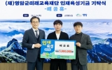 영암 코리아피플뉴스2026. 01.07[코리아피플뉴스]배공휴 대양축산 대표가 6일 영암군청을 찾아 영암군미래교육재단에 지역 인재 육성 장학금 500만원을 기부했다. 2017년부터 해마다 장학금 전달을 이어온 배 대표는, 이날 기부에 아들 경준 씨와 함께해 눈길을 끌었다. 경준 씨는 아버지의 나눔을 이어 장학금 기부를 지속해 나가겠다는 뜻을 밝히며 세대를 잇는 나눔의 모범을 보였다. 배 대표는 “대양축산은 지역사회와 함께 성장해 왔고, 지역민에게 받은 신뢰에 보답하는 지역사회 환원은 당연한 일이다”고 말했다.