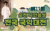 목포 코리아피플뉴스2025. 06.04[코리아피플뉴스]순천시는 전통문화의 향기가 살아 숨 쉬는 순천 낙안읍성에서 오는 14일부터 15일까지 이틀간 ‘제11회 순천 낙안읍성 전국 국악대전’을 개최한다고 밝혔다. 이번 대회는 전국의 국악 인재들이 한자리에 모여 초등부부터 명인부까지 총 6개 부문에서 판소리와 민요 경연을 펼치는 자리이다. 14일은 예선 경연, 15일은 본선과 시상식, 그리고 대회 축하공연이 함께 진행된다. 국악대전은 단순한 경연을 넘어 국악의 저변 확대와 전통예술의 계승 및 대중화에 기여하는 뜻깊은 행사로, 어느덧 11회를 맞이하여 권위 있는 국…
