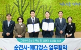 여수 코리아피플뉴스2026. 03.10[코리아피플뉴스]순천시가 글로벌 토탈 라이프케어 전문기업 ‘메디앙스(주)’와 손잡고 대한민국을 대표하는 그린바이오 산업 생태계 조성에 본격적으로 나선다. 순천시는 10일 순천시청에서 노관규 순천시장과 메디앙스 박수찬 대표이사 등 관계자들이 참석한 가운데 ‘그린바이오 산업 육성 및 생태계 조성을 위한 업무협약’을 체결했다고 밝혔다. 이번 협약은 순천시의 생태․정원 자원과 메디앙스의 고도화된 생산‧연구 역량을 결합해, 지역과 기업이 동반 성장하는 지속가능한 산업 모델 구축을 위해 마련됐다. 보령그룹에서 분리된 메디앙스는 비앤비…