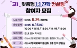 여수 코리아피플뉴스2025. 05.28[코리아피플뉴스]여수시가 오는 6월 14일 행복교육지원센터에서 열리는 ‘고1 맞춤형 1:1 진학 컨설팅’에 참여할 학생과 학부모를 모집한다. 해당 프로그램은 바뀐 교육 과정에서 더욱 비중이 높아진 학교생활기록부 작성과 내신 관리 정보를 제공하고 현실적인 진로·진학 방향을 제시해 개인별 대입 준비 역량을 높이기 위해 마련됐다. 상담은 ▲오전 10시 ▲오전 11시 15분 ▲오후 1시 30분 ▲오후 2시 45분 ▲오후 4시 등 5차시로 마련됐으며, 차시별로 1시간씩 진행된다. 모집 인원은 차시별 10명이며, 학부모 동반 참여가 가능…