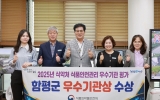 [코리아피플뉴스]전남 함평군은 “식품의약품안전처 주관 ‘2025년 식품안전관리 평가’에서 기초단체 부문 우수기관으로 선정돼 표창과 함께 200만 원의 포상금을 수상했다”고 18일 밝혔다. 평가는 제24회 식품안전의 날을 맞아 2024년 실적을 기준으로 전국 17개 시도와 228개 시군구를 대상으로 실시됐다. 평가에서는 ▲식품안전 제도 운영 ▲기초 위생관리 ▲우수사례 등 13개 지표를 심사해 시·도 5곳, 시군구 16곳 등 총 21개 기관이 우수기관으로 선정됐다. 함평군은 매월 마트와 재래시장 등에서 정기적으로 식품을 수거·검…