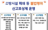 나주 코리아피플뉴스2025. 05.16[코리아피플뉴스]나주소방서는 소방시설 불법행위를 근절하고 자율적인 안전문화를 정착시키기 위해 연중 ‘불법행위 신고포상제’를 운영하고 있다고 밝혔다. 신고포상제는 다중이용업소, 대형마트, 전문점, 백화점, 쇼핑센터, 복합쇼핑몰, 판매시설, 숙박시설 등 총 9개 업종을 대상으로 하며, 소방시설을 고의로 폐쇄하거나 차단하는 행위(예: 소방시설 잠금 등)와 같은 소방 관련 불법행위를 신고할 수 있다. 신고는 국민신문고 또는 나주소방서 누리집을 통해 접수할 수 있으며, 신고 내용이 사실로 확인되고 지급 요건을 충족할 경우, 건당 5만 원…