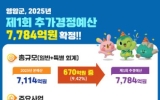 순천 코리아피플뉴스2025. 05.01[코리아피플뉴스]영암군이 4/30일 영암군의회 의결을 거쳐 7,784억원 규모의 ‘2025년 제1회 추가경정예산’을 확정했다. 이는 올해 본예산 7,114억원의 9.42%인 670억원이 증액된 수치로, 일반회계는 8.66% 561억원 증가한 7,043억원, 특별회계는 17.21% 109억원 증가한 742억원이다. 영암군은 고물가·고금리·사회재난 등으로 어려움을 겪고 있는 영암군민의 생활 안정, 지역경제 활성화 등 민생경제 회복을 최우선 과제로 추경을 편성했다. 특히, 정부 긴축재정 상황에서 건전재정을 기조로 부족한 재원의 …