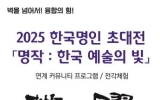 순천 코리아피플뉴스2025. 04.30[코리아피플뉴스]순천문화재단은 오는 5월 2일 오후 5시 개전식을 시작으로, 5월 21일까지 순천창작예술촌 3호 ‘조강훈아트스튜디오’에서 한국명인 초대전 「명작 2025: 한국 예술의 빛」을 개최한다고 밝혔다. 이번 전시에는 광주·전남 지역의 명인 총 26명이 참여하며, 전통 공예를 비롯해 염색, 청자, 서각, 전각새김, 민화 등 다양한 분야의 작품을 한자리에서 만나볼 수 있다. 또한, 전시 연계 커뮤니티 프로그램으로 오정근 명인과 함께하는 ‘전각 체험’도 운영되어 관람객이 직접 참여할 수 있는 기회를 제공한다. 조강훈아트스…