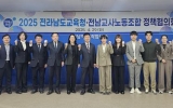 장흥 코리아피플뉴스2025. 04.29[코리아피플뉴스]전라남도교육청과 전남교사노동조합은 29일 청사 중회의실에서 노사 양측 관계자들이 참석한 가운데 ‘2025년 정책협의회 개회식’을 갖고 오는 5월 9일까지 협의회를 진행한다. 이번 정책협의회에서 다룰 주요 내용은 ▲ 학교업무경감 ▲ 현장체험학습운영 ▲ 교육활동 보호 ▲ 교사 처우개선 및 본질업무 회복 등 현장의 요구를 반영한 50개 항목이다. 전남교육청과 전남교사노조는 이번 정책협의가 원만히 이뤄지면 소통과 협력, 상생의 동반자 관계로 한 단계 더 발전하게 될 것으로 기대한다. 노·사 양측은 이날 개회식에서 교…