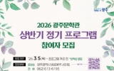 광주 코리아피플뉴스2026. 03.06[코리아피플뉴스]광주광역시는 시민의 문학적 감수성과 창작 역량을 키우기 위해 ‘2026년 광주문학관 상반기 정기 프로그램’을 운영한다. 상반기 프로그램은 3월부터 5월까지 어린이·청소년·성인·작가 지망생 등 전 세대를 대상으로 ▲그림책 만들기 ▲노벨수상작 읽기 ▲시 낭송 ▲시 창작 등 5개 과정으로 구성됐다. 수강 신청은 5일부터 광주문학관 누리집과 전화 접수를 통해 강좌별로 선착순 모집한다. 어린이를 대상으로 하는 ‘나만의 그림책 만들기’는 28일부터 매주 토요일 오전 10시 운영된다. 다양한 아동도서를 읽고 자신의 감…