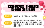 여수 코리아피플뉴스2026. 04.15[코리아피플뉴스 / 김영현 기자] 전남 여수시가 다자녀 가정의 소중한 일상을 기록하고 가족 간 유대감을 높이기 위해 가족사진 촬영비 지원에 나선다. 이번 사업은 다자녀 가정에 대한 긍정적인 인식을 확산하고 행복한 순간을 추억으로 남길 수 있도록 마련됐다. 신청 대상은 공고일인 4월 13일 기준 부모와 자녀 모두 여수시에 1년 이상 거주 중이고, 막내 자녀가 18세 이하(2008년 1월 1일 이후 출생)인 둘째아 이상 다자녀 가정이다. 신청 기간은 4월 28일까지며, 신청 서류와 유의사항 등 자세한 내용은 여수시 누리…