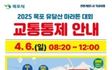 순천 코리아피플뉴스2025. 04.02[코리아피플뉴스]목포시는 유달산봄축제 마지막 날인 6일 목포종합경기장에서 개최되는 2025 목포 유달산 마라톤 대회 코스의 일부 구간에 대해 교통통제를 실시한다고 밝혔다. 안전한 대회 진행을 위해 대회 당일 8시 20분부터 12시까지 코스 구간에 차량통제를 실시한다. 대연초 삼거리에서 압해대교 양방향은 통제되며, 목포종합경기장에서 대양산단 방향은 일방통행이 시행된다. 목포대교 밑, 유달산우체국 ~ 유달산 일주도로, 유달산우체국 ~ 국제여객선터미널 앞까지 전면 통제되며, 구)수협 ~ 대반동 ~ 해상케이블카 등도 부분 통제가…