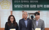 영광 코리아피플뉴스2025. 03.27[코리아피플뉴스]담양군의회가 27일 입법 ․ 정책 법률고문 위촉식을 갖고 박순종 ․ 우지영 교수를 신임 고문으로 위촉했다고 밝혔다. 박순종(한양대학교 공공정책대학원 겸임교수) 신임 고문은 동 대학교 지방자치연구소 지방의정센터장, 부여군의회 입법고문을 맡고 있으며, 우지영(경희대 공공대학원 객원교수) 신임 고문은 한국지방정치연구소 총괄 소장, 남원시의회 입법정책 고문으로 활동하고 있어 예산결산 분석, 자치법규 제․개정, 관련법규 해석 등 임기 2년간 입법 ․ 정책 분야에서 보다 전문적인 자문이 가능할 것으로 기대를 모으고 있다.…