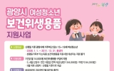광양 코리아피플뉴스2026. 02.27[코리아피플뉴스]광양시는 여성청소년의 건강권 보장 및 권익 증진을 위해 ‘광양시 여성청소년 보건위생용품 지원사업’을 추진한다고 밝혔다. 지원 대상은 광양시에 주민등록을 두고 거주하는 15세부터 18세(2008년~2011년 출생) 여성청소년으로, 약 2,900명이 혜택을 받을 것으로 예상된다. 지원 금액은 1인당 월 1만 4,000원(연간 최대 16만 8,000원)으로 보건위생용품을 구입할 수 있는 바우처 포인트로 지급되며, 관내 편의점(CU, GS25, 세븐일레븐, 이마트24) 등 오프라인 매장 또는 온라인 ‘푸르미 바우처몰’에…