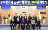 영광 코리아피플뉴스2025. 03.04[코리아피플뉴스]광주 남구의회는 4일 본회의장에서 개원 30주년을 맞이하여 기념행사를 개최했다. 이날 행사에는 남구의회 전‧ 현직 의원, 김병내 남구청장을 비롯한 관계 공무원 등 120여명이 참석한 가운데 남구의회의 지난 역사를 회고하며 개원 30주년을 함께 축하했다. 남호현 의장은 의정발전에 기여한 주민 17명에게 표창패를 수여했다. 또한, 전직 의원으로 구성된 (사)남구의정회가 수여하는 ‘의정대상’은 김광수 의원이 연속 3회째 수상하고, ‘의정봉사대상’은 오영순 의원이 수상의 영예를 안았다. 남호현 의장은 …