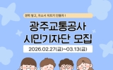 전남 코리아피플뉴스2026. 02.26[코리아피플뉴스 / 김영현 기자] 광주교통공사가 광주도시철도의 생생한 현장 소식을 시민의 눈으로 기록하고 전달할 ‘2026 시민소통기자단’을 공개 모집한다. 이번 모집은 도시철도 2호선 건설 현황과 주요 역세권 소식 등 공사의 주요 사업과 현장을 시민의 시각으로 전달하고, 온라인 홍보 콘텐츠를 활성화하기 위해 마련됐다. 선발된 기자단은 약 9개월간 현장 취재를 통해 블로그 포스팅과 SNS 영상 제작 등 다양한 형태의 콘텐츠를 제작하게 된다. 올해는 숏폼 등 영상 콘텐츠 트렌드에 발맞춰 영상 분야(6명)를 새롭게 선발한다.…
