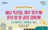 해남 코리아피플뉴스2026. 04.17[코리아피플뉴스]해남군은 바다 건너 제주 소비자를 찾아 오는 17일부터 19일, 3일간 제주시농협 하나로마트 제주점 야외특설매장에서 농수특산물 직거래장터를 운영한다. 이번 행사에서는 해남고구마를 비롯해 잡곡류, 차류, 가공식품 등 100여종의 다양한 농수특산물을 합리적인 가격으로 선보일 예정이다. 특히 이번 행사에서는 소비자 참여를 높이기 위한 다양한 이벤트도 함께 마련됐다. 행사 기간 동안 5만원 이상 구매 고객에게는 해남 특산물을 증정하며, 10만원 이상 구매 고객에게는 1+1 해남 특산물 추가 증정 혜택을 제공한다. 또한 해…