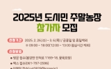 광양 코리아피플뉴스2025. 02.21[코리아피플뉴스]광양시가 ‘2025년 도시민 주말농장’ 참가자를 모집한다. 주말농장은 시민들이 직접 텃밭을 가꾸며 농업을 체험할 수 있도록 지원하는 사업이다. 농장은 광양시 농업기술센터가 퇴비와 비료 사용, 경운, 구획 정리 등 기본적인 기반 조성을 담당하고, 참가자는 모종, 종자 및 소농기구 등을 개별적으로 준비해 자율적으로 텃밭을 가꾸는 방식으로 운영된다. 올해 주말농장 운영 기간(경작 기간)은 오는 4월부터 12월까지다. 규모는 총 160구획이며 ▲ 일반 텃밭 100구획 ▲ 은퇴자 텃밭 20구획 ▲ 다자녀가정 텃밭…
