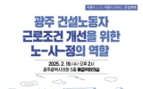 광주 코리아피플뉴스2025. 02.19[코리아피플뉴스]지역 건설산업의 열악한 실정을 이해하고, 건설노동자 고용 안정성을 확보하며 노사정 역할과 상생 방안을 모색하기 위한 자리가 마련됐다. 광주시의회 채은지 의원은 19일 오후 2시 광주시의회 예산결산특별위원회 회의실에서 ‘광주 건설노동자 근로조건 개선을 위한 노-사-정의 역할’을 주제로 정책토론회를 개최했다. 채은지 의원이 좌장을 맡고, 임상훈 한양대학교 경영학부 교수와 이준상 민주노총 건설노조 광주전남건설지부장이 발제했다. 임상훈 교수는 ‘건설산업 선진화를 위한 현장 생산성 연구 결과 요약 및 정책 제언’을 이준…