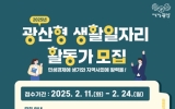 구청 코리아피플뉴스2025. 02.16[코리아피플뉴스]광주 광산구가 지속 가능한 일자리 생태계 조성과 민생경제 회복을 도모하기 위한 일자리 사업 참여자를 모집한다. 모집 분야는 △생활민원 해결 △마을 일손 도움 △공공시설 운영지원 △공공사업 인력 지원으로 구성됐다. 광산형 생활일자리 활동은 생활민원 해결, 공공사업 인력 지원 등 총 37개 사업에 참여하며 광산구에 거주하는 미취업자를 대상으로 3월부터 6월까지 4개월 동안 활동할 150명을 모집한다. 참여 수당 일부는 온누리상품권으로 지급한다. 신청 방법은 24일까지 광산구청 각 일자리 담당 부서에 방문해 접수하면…
