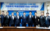 전남 코리아피플뉴스2026. 02.25[코리아피플뉴스]전라남도는 25일 ‘전남·광주통합특별시 기업유치 특별전담반’ 킥오프(Kick-off) 회의를 열고, 400만 통합특별시 조성을 위한 기업유치 활동에 본격 돌입했다. 특별전담반은 전남도가 지난 12일 발표한 ‘전남·광주 3+1축 산업 대부흥 비전’과 연계해 80만 명 인구 유입과 450조 원 규모 투자유치를 목표로 핵심기업 유치를 추진하기 위해 구성됐다. 이날 회의는 강위원 경제부지사 주재로 전략산업국, 에너지산업국, 일자리투자유치국, 농축산식품국, 해양수산국, 건설교통국 등 8개 실국이 참여해 실국별 기업유치 …