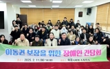 구청 코리아피플뉴스2025. 02.12[코리아피플뉴스]목포시의회 박수경 의원(더불어민주당), 최유란 의원(더불어민주당)이 지난 11일 목포시의회 소회의실에서 '이동권 보장을 위한 장애인 간담회'를 개최했다. 간담회에는 전국장애인이동권연대, 전남장애인차별철폐연대, 광양장애인이동권연대, 유달장애인자립생활지원센터, 전남여성장애인연대, 전남장애인권익옹호기관, 목포장애인이동권연대, 교통약자이동센터, 목포시의회 박창수 의원, 박용준 의원, 관계 공무원 등이 참석했다. 뿐만 아니라, 유달장애인자립생활지원센터 권리중심 노동자 및 전담인력들과 근로지원 인력들도 대거 참석하여 본인…