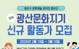 강진 코리아피플뉴스2026. 02.22[코리아피플뉴스]광주 광산구가 광산구 문화예술 온라인 홍보단 ‘2026년 광산문화지기’ 참여자를 3월 10일까지 모집한다. ‘광산문화지기’는 광산구의 다양한 문화예술 공연과 행사 현장을 직접 취재하고, 누리소통망(SNS)에 생생한 후기를 작성, 공유하는 온라인 홍보단이다. 광산문화지기는 4월부터 12월까지 약 9개월간 활동한다. 모집 인원은 10명 내외로, 문화예술에 관심이 많고 누리소통망(SNS) 활용이 능숙한 시민이라면 누구나 참여할 수 있다. 참여 방법은 광산구 누리집 새소식에서 신청 서류를 내려받아 3월 10일까지 전자…