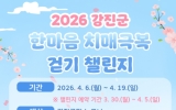 강진 코리아피플뉴스2026. 03.31[코리아피플뉴스] 강진군 보건소(치매안심센터)가 치매예방에 대한 관심을 높이고 건강 생활 실천을 독려하기 위해 오는 4월 6일부터 19일까지 14일간 '한마음 치매극복 걷기챌린지'를 운영한다. 이번 행사는 군민이 한마음으로 치매 극복을 기원하고 치매에 대한 부정적인 인식을 개선해 치매 친화적 지역사회 환경 조성하기 위해 마련됐다. 챌린지는 모바일 걷기 플랫폼인 ‘워크온’ 앱을 통해 진행되며 강진군민이라면 누구나 참여할 수 있다. 참여방법은 스마트폰 앱스토어에 '워크온' 설치 및 회원가입 후 ‘강진군 치매 극복 걷기’ 챌린지 …