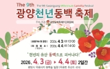 장성 코리아피플뉴스2026. 03.30[코리아피플뉴스] 광양동백축제추진위원회는 4월 3일부터 4일까지 이틀간 옥룡면 옥룡사지 동백숲 일원에서 제9회 광양천년동백축제를 연다. 이번 축제는 천년의 역사를 간직한 옥룡사지 동백숲을 배경으로 공연과 체험, 주민 참여 행사를 마련해 봄철 지역 관광 활성화에 힘을 보탤 예정이다. 올해로 9회를 맞는 이번 축제는 ‘천년의 유산 동백으로 피어나다’를 주제로 마련됐으며, 축제는 동백숲의 자연경관과 지역 문화를 함께 즐길 수 있도록 공연, 체험, 전시, 주민 참여 프로그램 등으로 구성된다. 축제 첫날인 4월 3일에는 다례제를 시작…