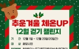 광양 코리아피플뉴스2025. 11.21[코리아피플뉴스]광양시가 지역민의 건강생활실천을 돕기 위해 모바일 걷기 앱 '워크온'에서 오는 12월 1일부터 12월 20일까지 ‘추운겨울 체온UP 12월 걷기 챌린지’를 운영한다. 걷기 챌린지는 1걸음당 1마일리지, 1일 최대 8,000마일리지까지 적립되며, 기간 동안 13만 보를 달성하면 13만 마일리지가 쌓여 모바일상품권(5천 원) 응모가 가능하다. 시는 목표 걸음을 달성한 참가자 중 추첨을 통해 800명에게 모바일상품권을 지급할 예정이다. 광양시민이면 누구나 참여할 수 있으며 참여 방법도 간단하다. ▲모바일 앱 ‘워크…