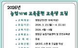 영암 코리아피플뉴스2026. 03.27[코리아피플뉴스]영암군이 농번기를 앞두고 농업기계 안전교육을 강화하며 교육생 모집에 나선다고 밝혔다. 군은 올해 2월 개관한 농업기계 안전교육관을 중심으로 현장 실습 위주의 교육훈련 과정을 운영하고, 농업인의 안전의식 향상과 사고 예방에 힘쓰고 있다. 이번 교육은 4월 23일 농기계 운전 실습을 시작으로 드론 실무, 생활 용접, 소형농기계 정비, 교통안전교육 등 현장 활용도가 높은 7개 과정으로 구성돼 상반기 동안 진행될 예정이다. 교육 참여를 희망하는 농업인은 QR코드 스캔 후 온라인 신청을 통해 참여할 수 있으며, 온라인 …