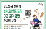 순천 코리아피플뉴스2026. 03.27[코리아피플뉴스] 순천시는 오는 4월 3일까지 ‘2026년 CNC체험지도사 3급 자격증반’ 교육생을 모집한다고 밝혔다. CNC(Computer Numerical Control)는 컴퓨터로 제어되는 기계장치로, 목재 등 재료를 정밀하게 조각하고 절단하는 데 사용한다. 이번 자격증반은 CNC 기계에 대한 기본적인 이론적 교육을 비롯해 2D 도면 제작, 기계 조작 실습, CNC체험지도사 3급 자격증 시험으로 구성된다. 교육은 오는 4월 11일부터 12일까지 이틀간 오전 9시부터 오후 6시까지 순천시목재문화지원센터에서 진행되며, 모…