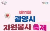 광양 코리아피플뉴스2025. 11.07[코리아피플뉴스]광양시는 오는 11월 15일 성황스포츠센터 다목적체육관에서 광양시자원봉사단체협의회 주관으로 ‘제11회 광양시 자원봉사 축제’를 개최한다고 밝혔다. ‘광양시 자원봉사 축제’는 한 해 동안 지역사회 발전을 위해 헌신한 자원봉사자들을 격려하고, 시민 모두가 함께 나눔의 가치를 공유하는 축제의 장이다. 올해 행사에서는 ▲광양시립합창단 공연 ▲자원봉사 플래시몹 퍼포먼스가 펼쳐지고, 24개의 자원봉사 체험부스가 운영된다. 또한 봉사활동의 성과를 담은 사진전이 열리고, 기념사진을 찍을 수 있는 포토존도 마련돼 자원봉사의 …